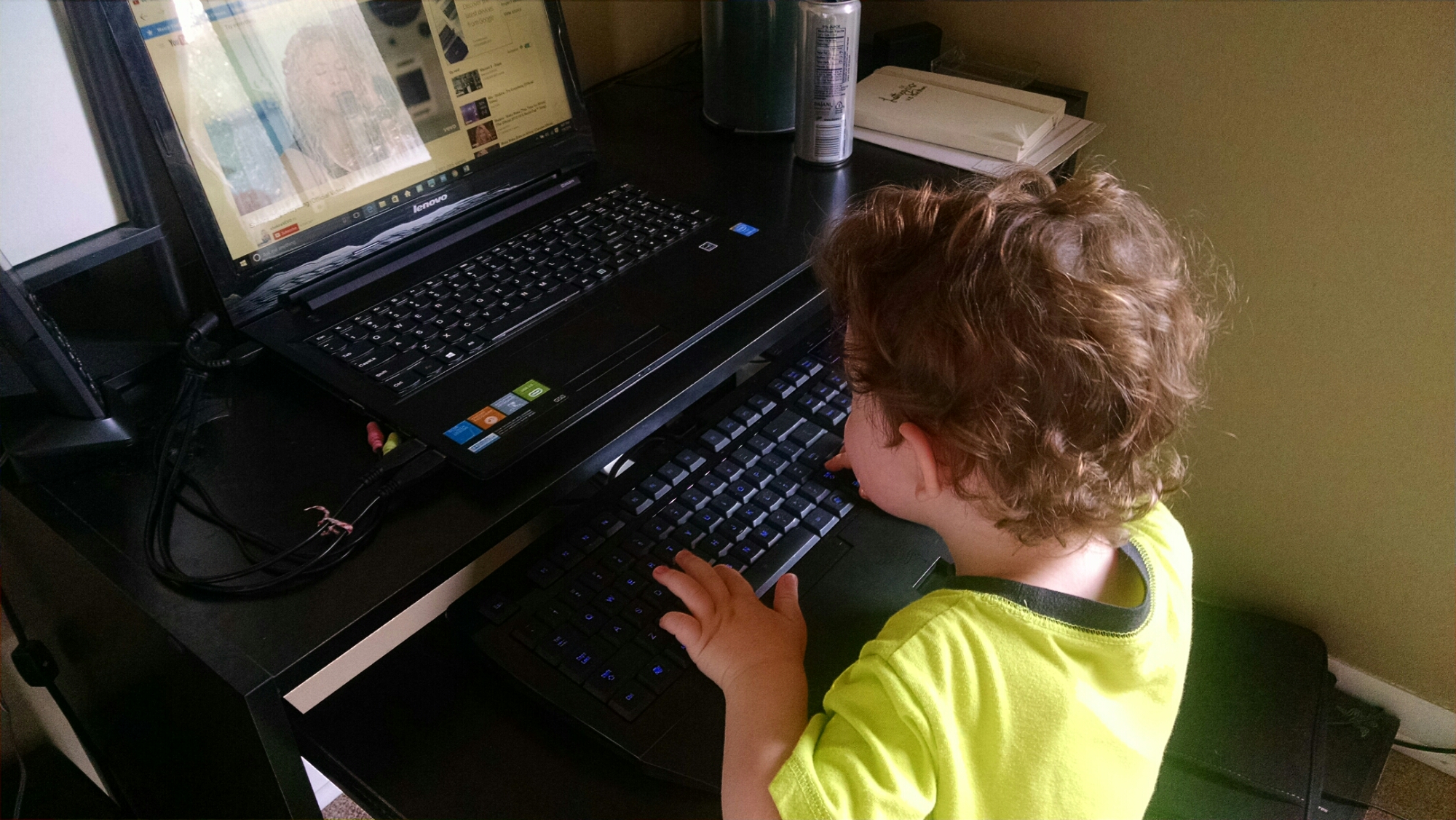 So I finally got my writing space set up this afternoon. I usually work from my tablet, since it is difficult to play with and chase my toddler around the house, with a laptop and keyboard in hand.